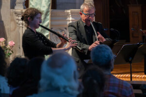Au‑delà des titres, ce qui frappe, c’est la façon dont Monteverdi fait circuler l’énergie entre les voix et les instruments, jouant des échos, des dialogues, des contrastes de texture et d’espace. Parmi ces instruments, certains ont aujourd’hui presque disparu mais étaient essentiels à la couleur sonore de la basilique Saint‑Marc : les sacqueboutes, ancêtres du trombone, avec leur timbre grave et chaleureux qui soutient et enveloppe les voix, et les cornets à bouquin, instruments de bois au son étonnamment proche de la voix humaine, capables de lignes virtuoses et très expressives. Leur présence donne à cette musique un relief très particulier : on n’entend pas seulement un chœur accompagné, mais une véritable polyphonie de voix humaines et instrumentales qui se répondent et se fondent. Aux côtés des voix et des instruments, l’orgue positif joue un rôle de lien et de respiration : par son timbre plus intime que celui d’un grand orgue, il soutient le chœur, colore discrètement l’harmonie et apporte une présence chaleureuse, presque domestique, au cœur même de cette architecture sonore monumentale.